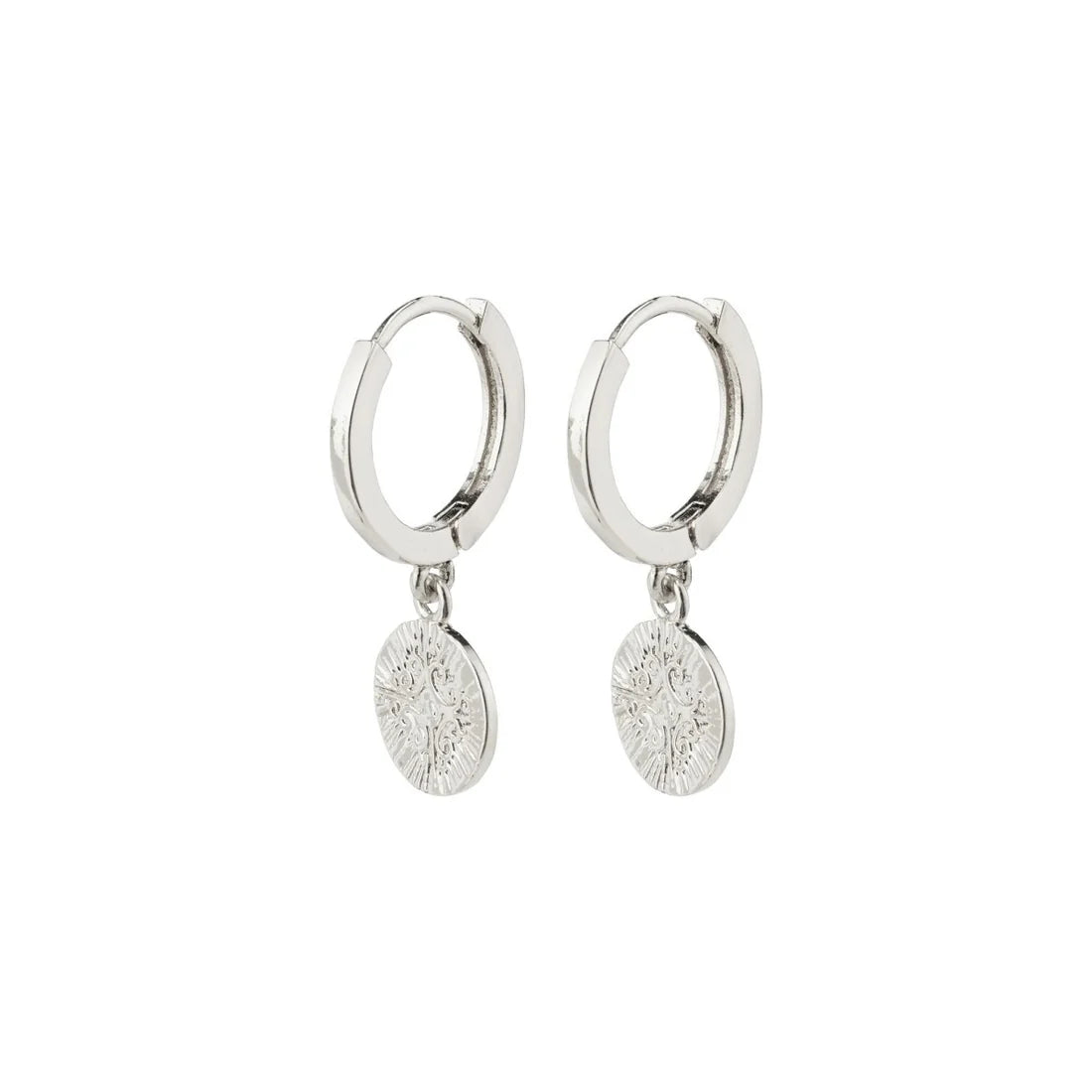 De petits anneaux avec des pendentifs en forme de pièces gravées. Nous les adorons en solo ou empilés avec vos autres anneaux et clous Pilgrim préférés.