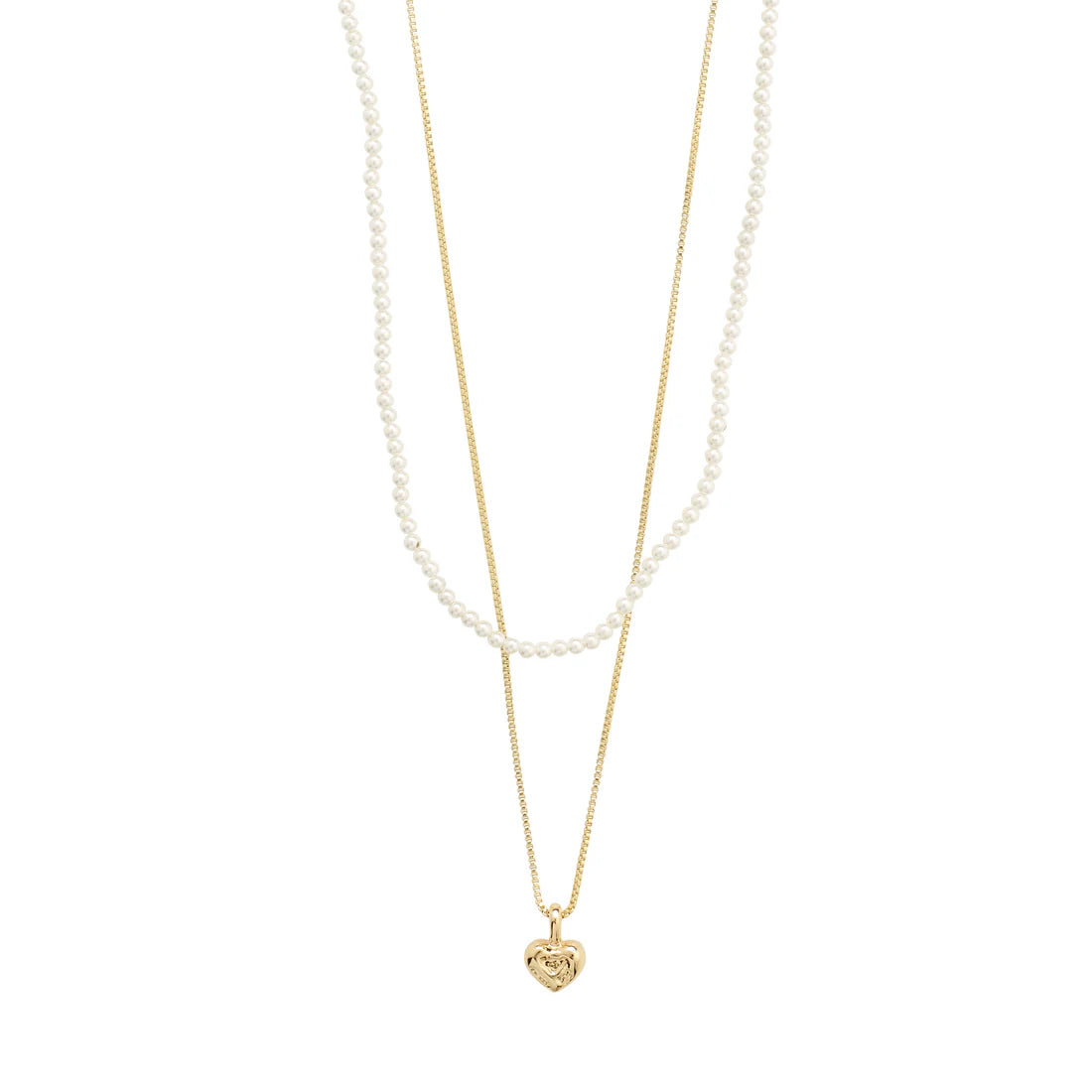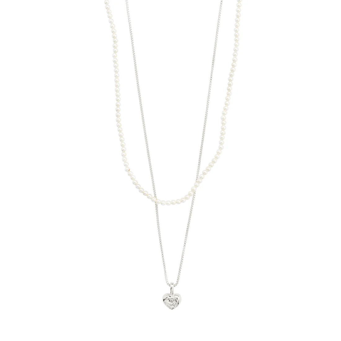 L'amour est éternel ! Libérez la fashionista qui sommeille en vous avec les colliers ARLET de Pilgrim, qui vous offrent 2 chaînes séparées dans un seul ensemble. Une fine chaîne à maille vénitienne plaquée argent avec un charmant petit cœur et un collier de perles avec de fines perles de verre blanc - parfait pour créer un look superposé. Votre nouvelle pièce incontournable pour les tenues de tous les jours ou votre déclaration simple mais élégante pour les aventures du soir. Un kit qui fait tout. Les chaînes mesurent 38/44 cm + une chaîne d'extension de 9 cm.