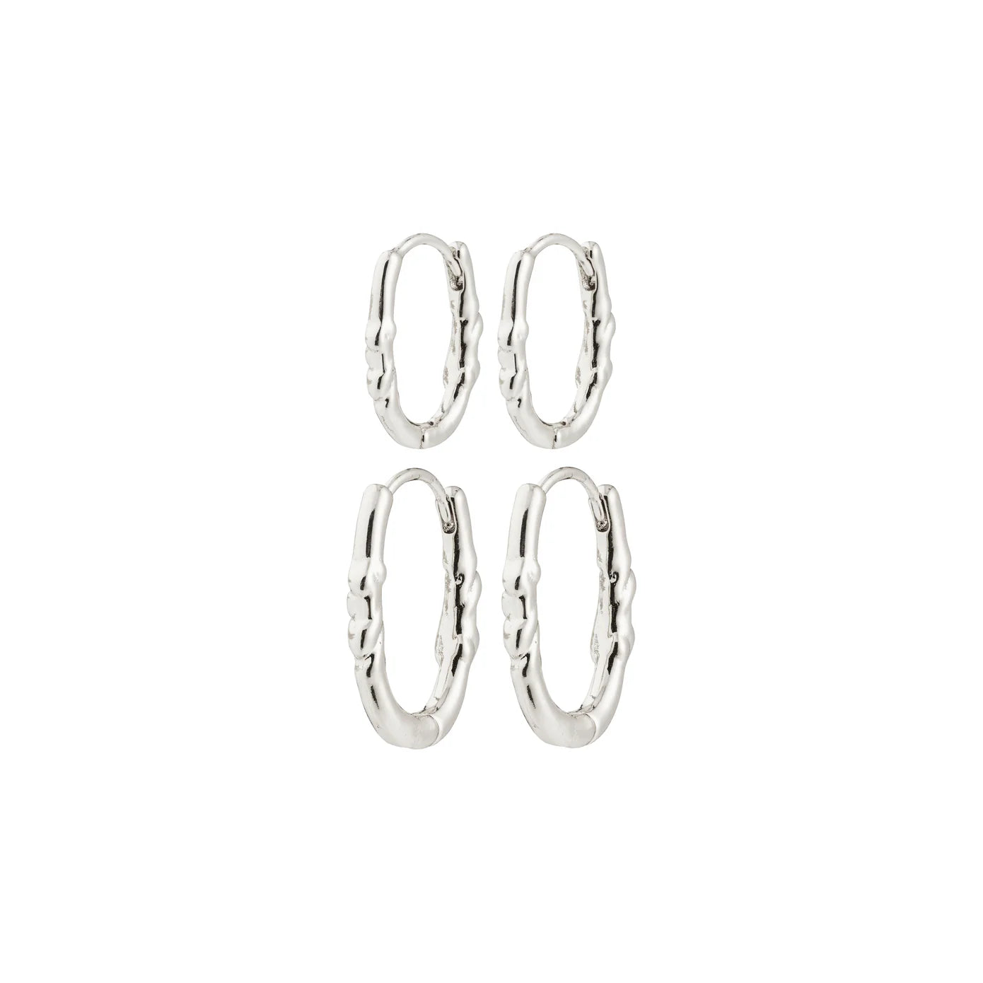 SENTEZ le flux, doublez le style ! Les créoles SENSE plaquées argent de Pilgrim vous offrent un ensemble 2 en 1 de créoles ovales au design inspiré de la nature, alliant texture et brillance en toute simplicité. Leur design épuré et leurs fermoirs pression faciles à utiliser en font un incontournable de votre collection de bijoux, parfait au quotidien. Portez les petites créoles seules pour un look minimaliste ou associez-les aux plus grandes pour un effet superposé tendance. Associez-les à un gros tricot et un chignon décoiffé pour une allure décontractée et tendance. Fabriquées à 99 % en matériaux recyclés : la mode et l'attention.