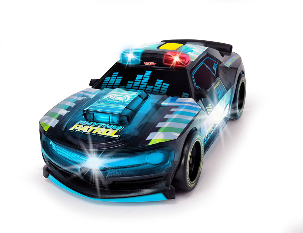Voiture de la Patrouille du rythme avec lumières clignotantes et lecteur de musique intégré - Voiture de police « Streets N Beatz » avec moteur à friction, 20 cm.