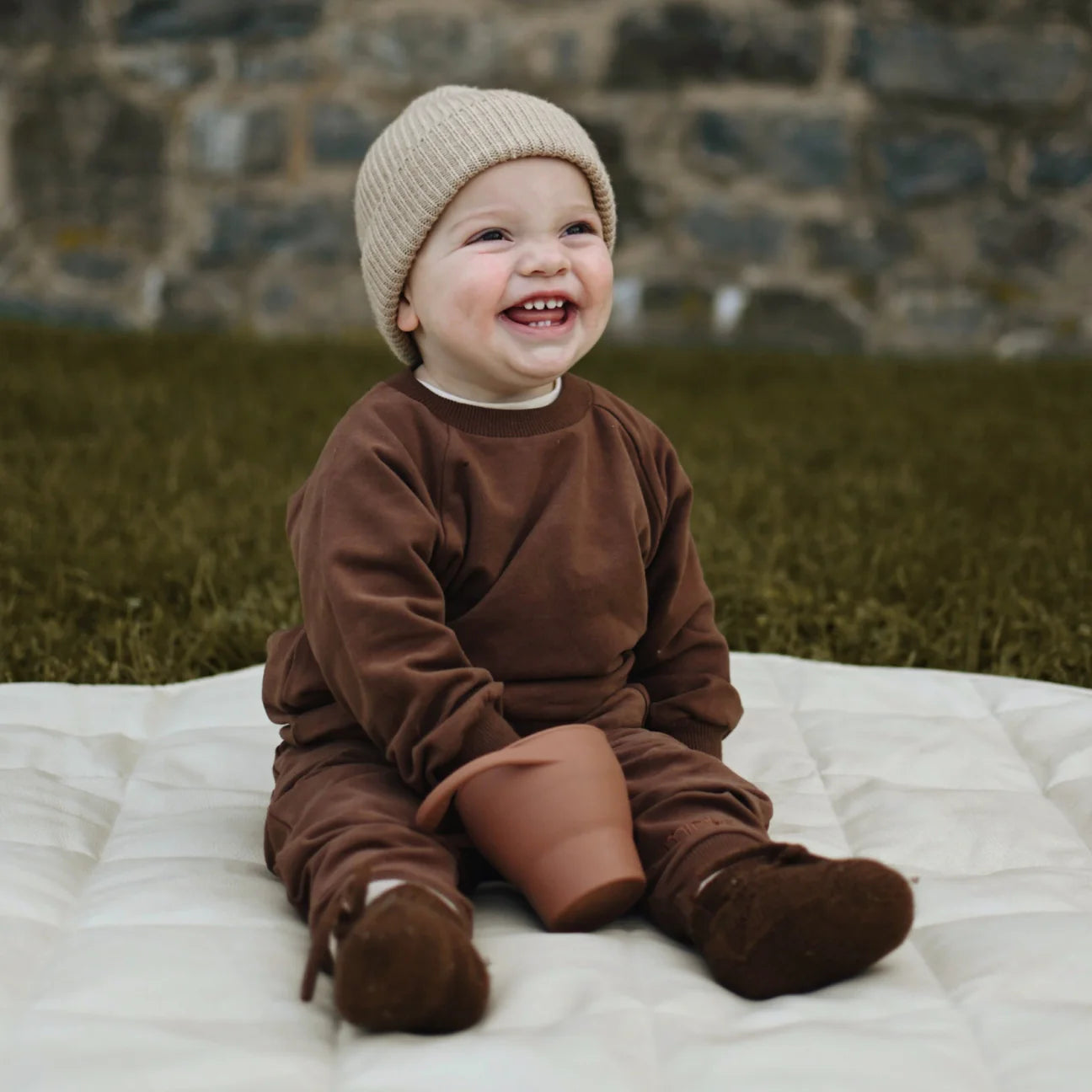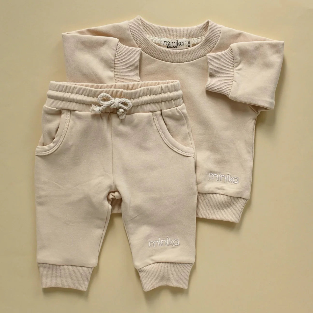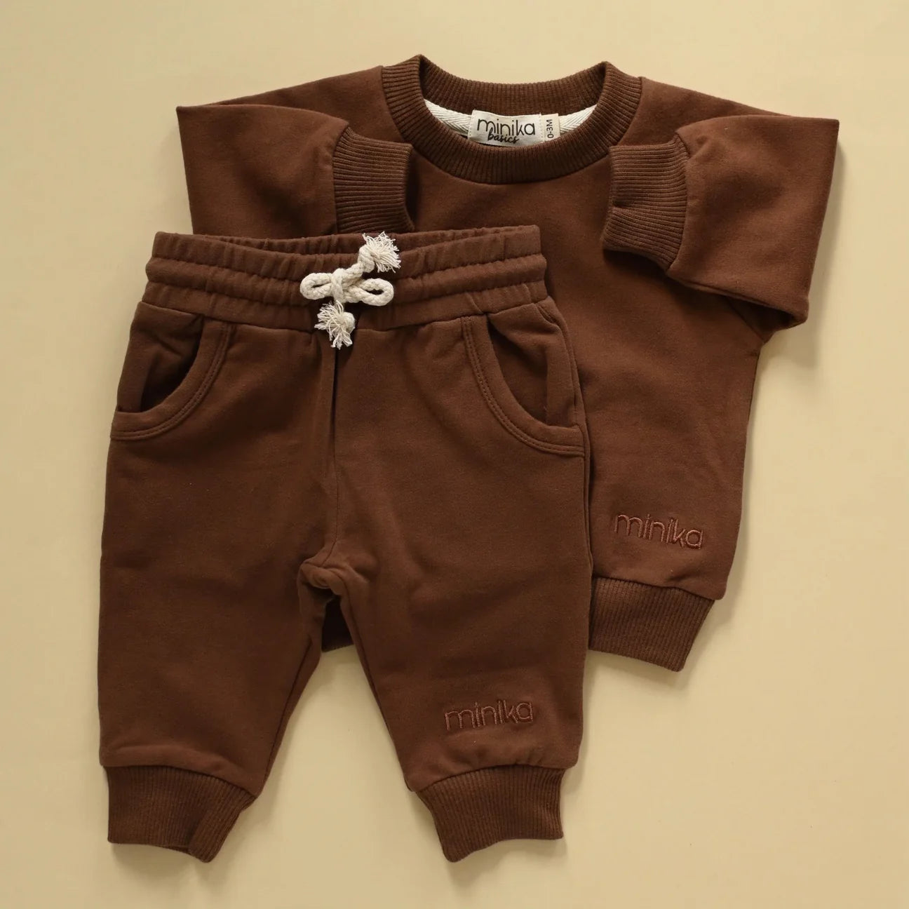Ensemble de survêtement en coton bio. Comprend: 1 pantalon et 1 chandail. Look confortable. Tissus très doux!