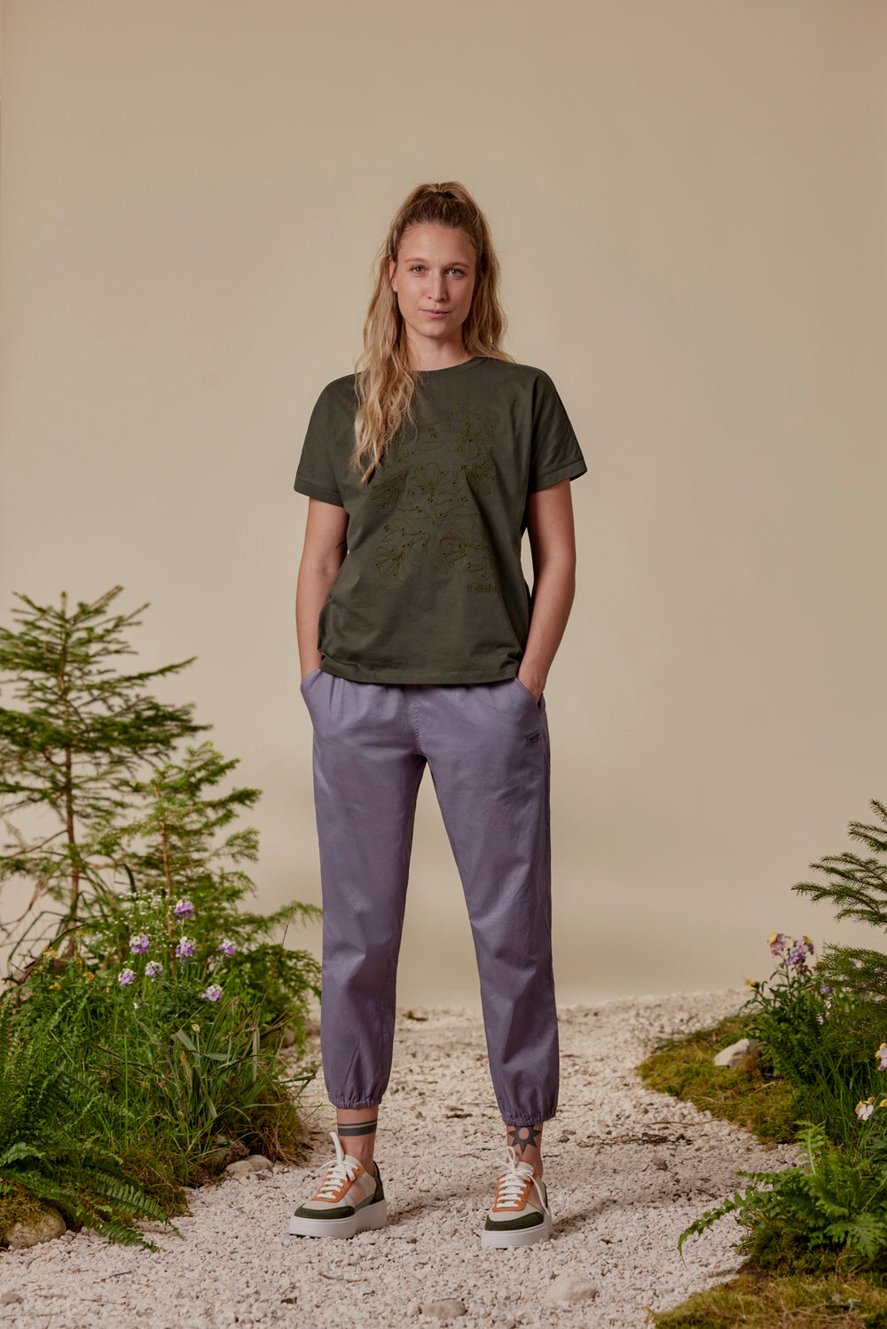 Ce pantalon d'été ample en coton biologique léger, doté de deux poches fendues, de deux poches arrière et d'une taille élastiquée, est idéal au quotidien pour l'été. Son imprimé floral intégral s'inscrit dans le thème de notre collection LA VIA.