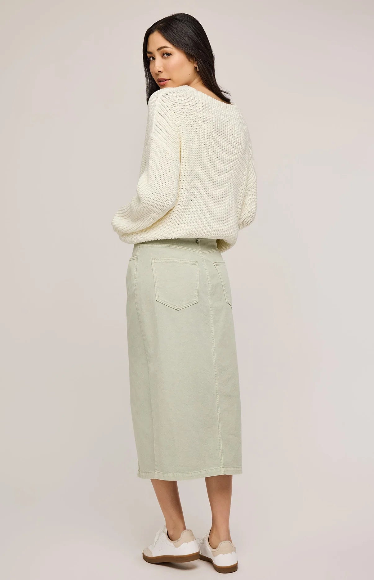 La jupe Georgia est fabriquée en toile de coton et a été teinte en pièce pour obtenir un look et une sensation parfaitement usés. Sa silhouette décontractée peut être facilement habillée de façon élégante ou plus décontractée.