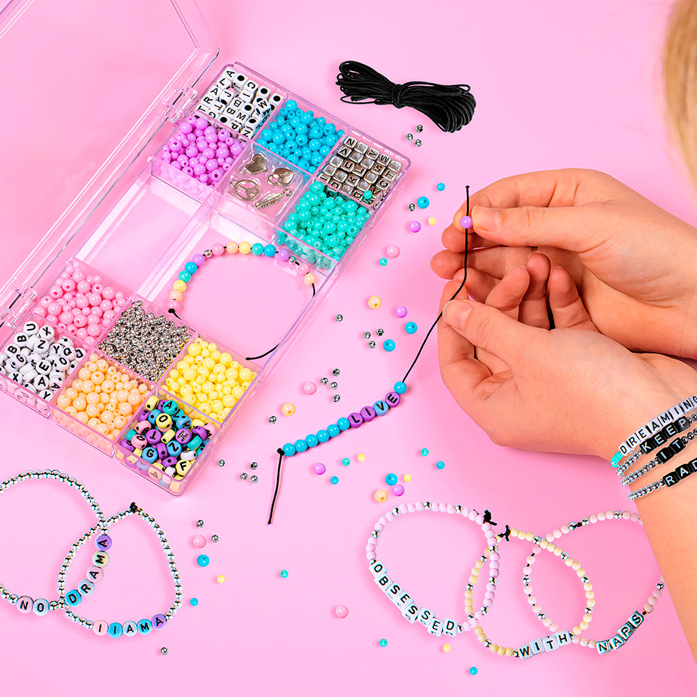 Utilisez les belles perles pastel, les perles alphabet et les métalliques pour créer des bracelets élastiques très spéciaux. Ce kit contient suffisamment de perles pour fabriquer des bracelets pour toute la famille ou tous vos amis. Nous avons inclus une feuille d'instructions, mais ces bracelets sont super faciles et rapides à fabriquer. Mélangez et assortissez les couleurs et les thèmes ou modifiez votre message lorsque l'ambiance vous interpelle. L'étui pratique garde les perles à un seul endroit pour le rangement.