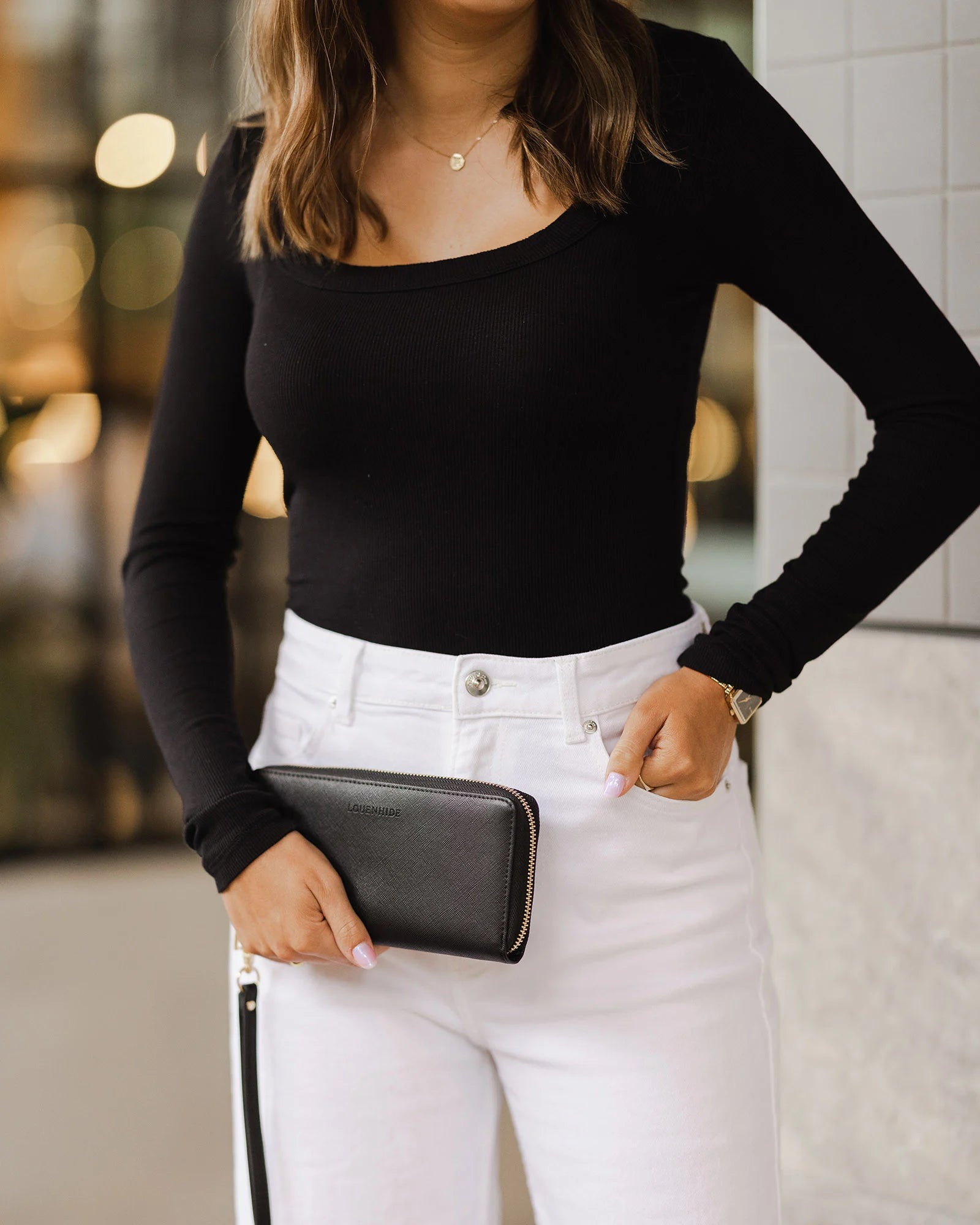 Le portefeuille Jessica de Louenhide est un accessoire classique et élégant, très apprécié des clients saison après saison. Élégant et compact, il offre un grand espace de rangement pour les cartes, les billets et les pièces de monnaie, ce qui en fait le compagnon idéal pour un usage quotidien. Glissez-le facilement sur votre poignet grâce à son porte-monnaie amovible pour une option de pochette lors d'une soirée !