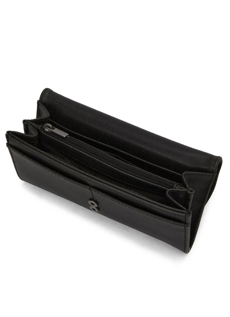 Portefeuille avec fermeture à bouton-pression et pochette à monnaie à l'arrière. Intérieur: 12 fentes pour cartes, séparateur...