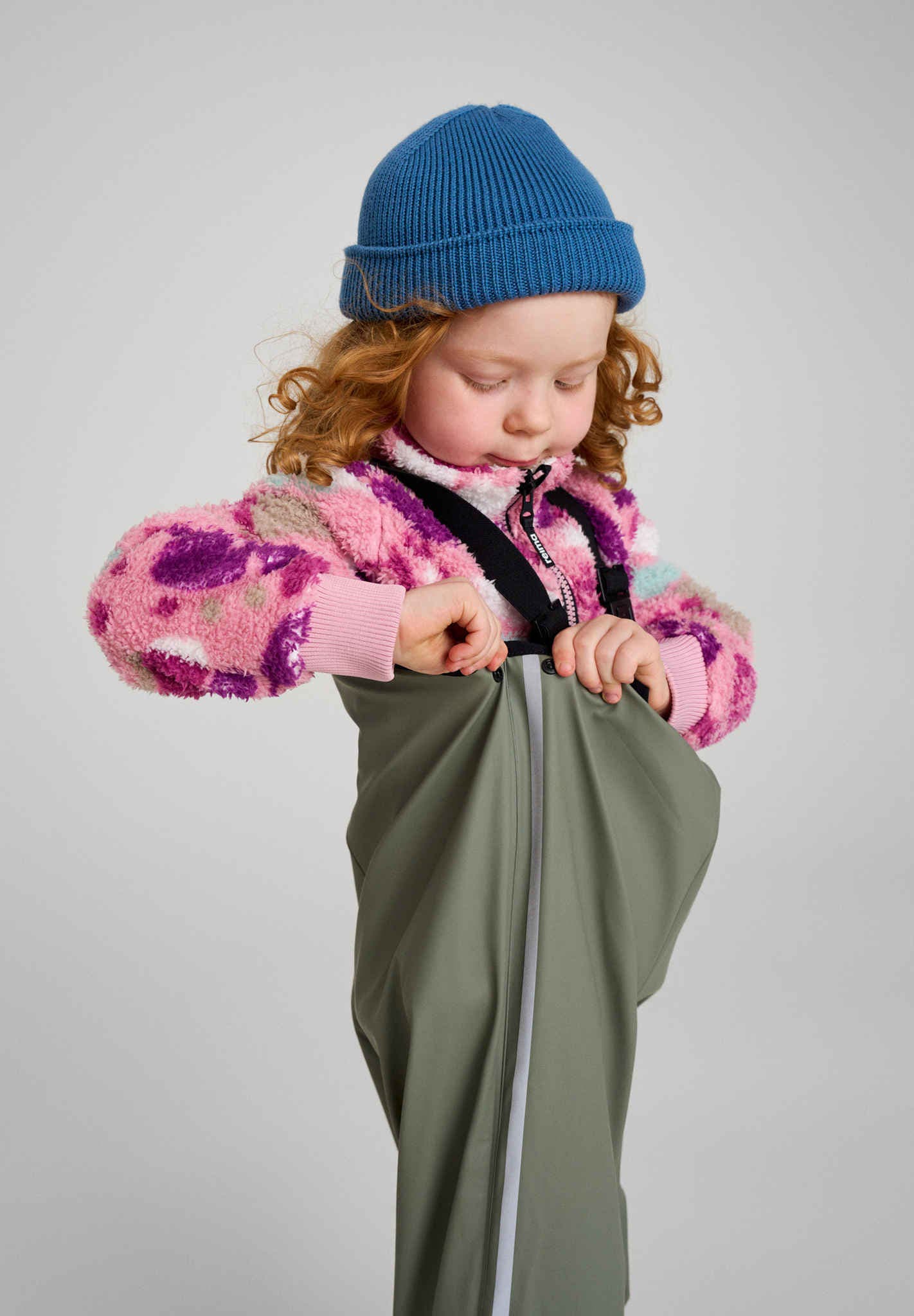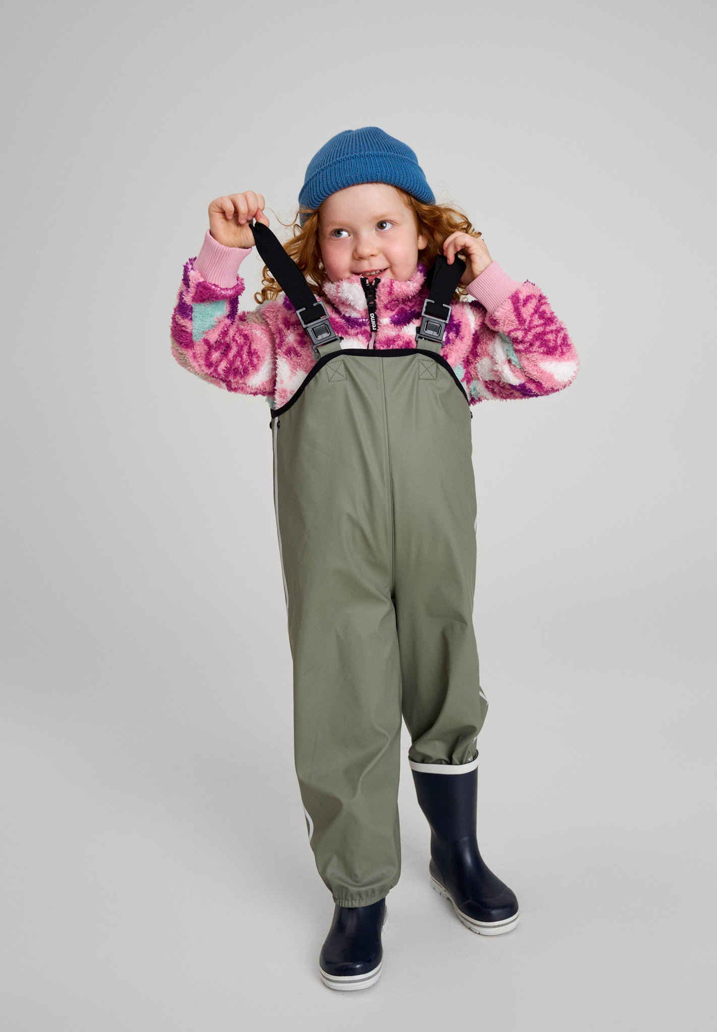 Le mannequin en Reima Red mesure 40,1''/102 cm et porte une taille 4T ; Le mannequin en gris-vert mesure 41,7''/106 cm et porte une taille 4T ; Le mannequin en jaune mesure 41,3''/105 cm et porte une taille 4T.