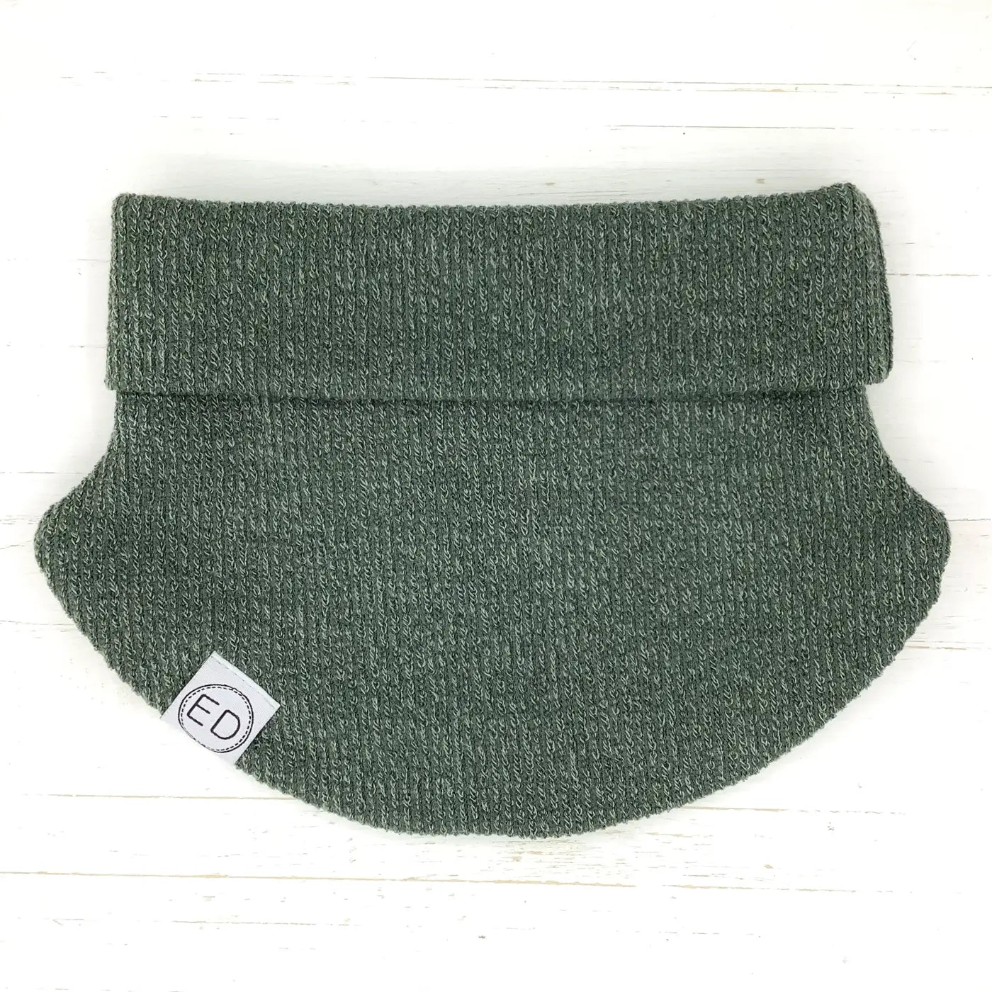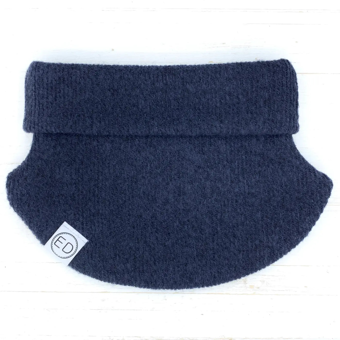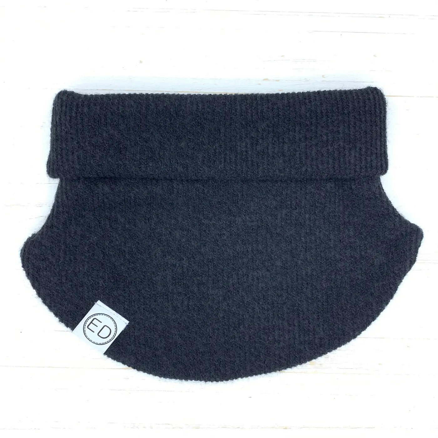 Cache-cou à panneaux au tissu souple et extensible. Le rebord se peut se dérouler au besoin.