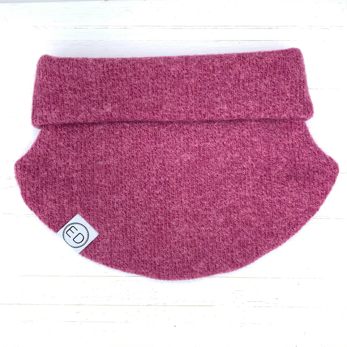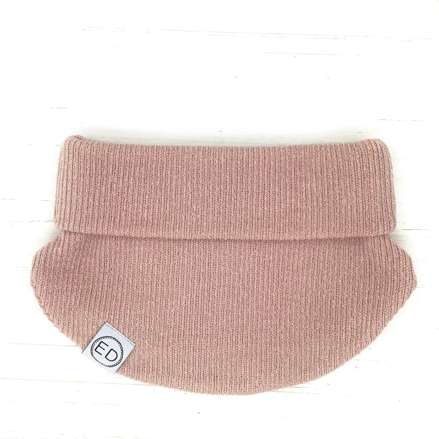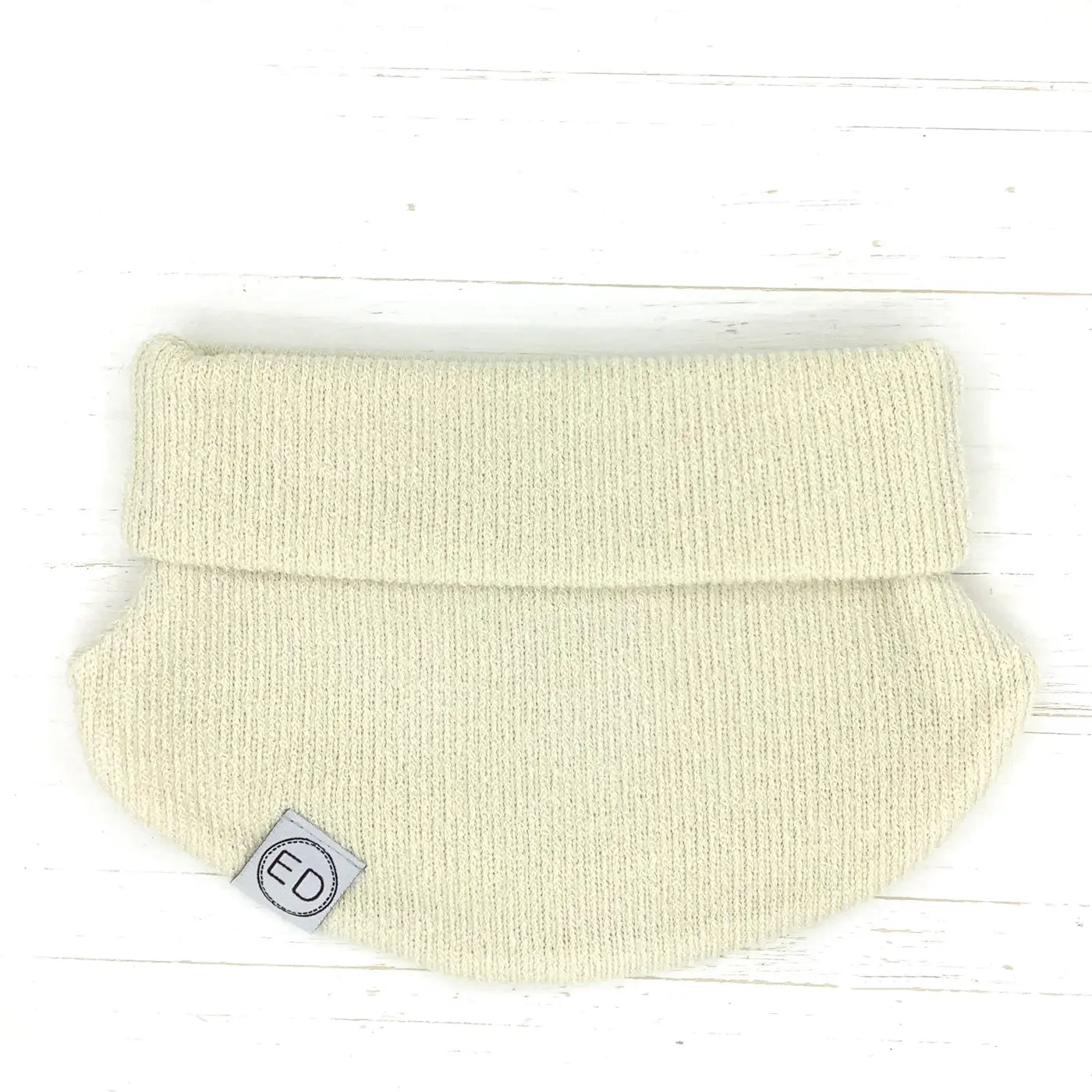 Cache-cou à panneaux au tissu souple et extensible. Le rebord se peut se dérouler au besoin.