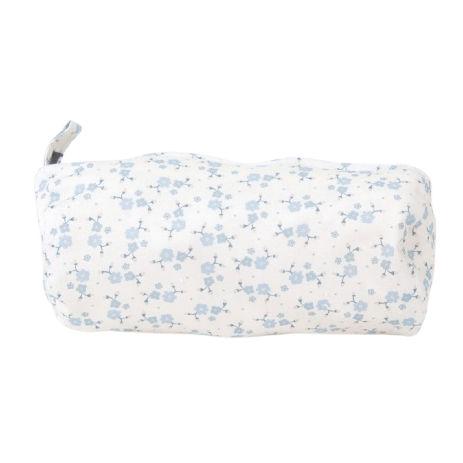 Petite trousse fleurs bleues fond beige cylindre