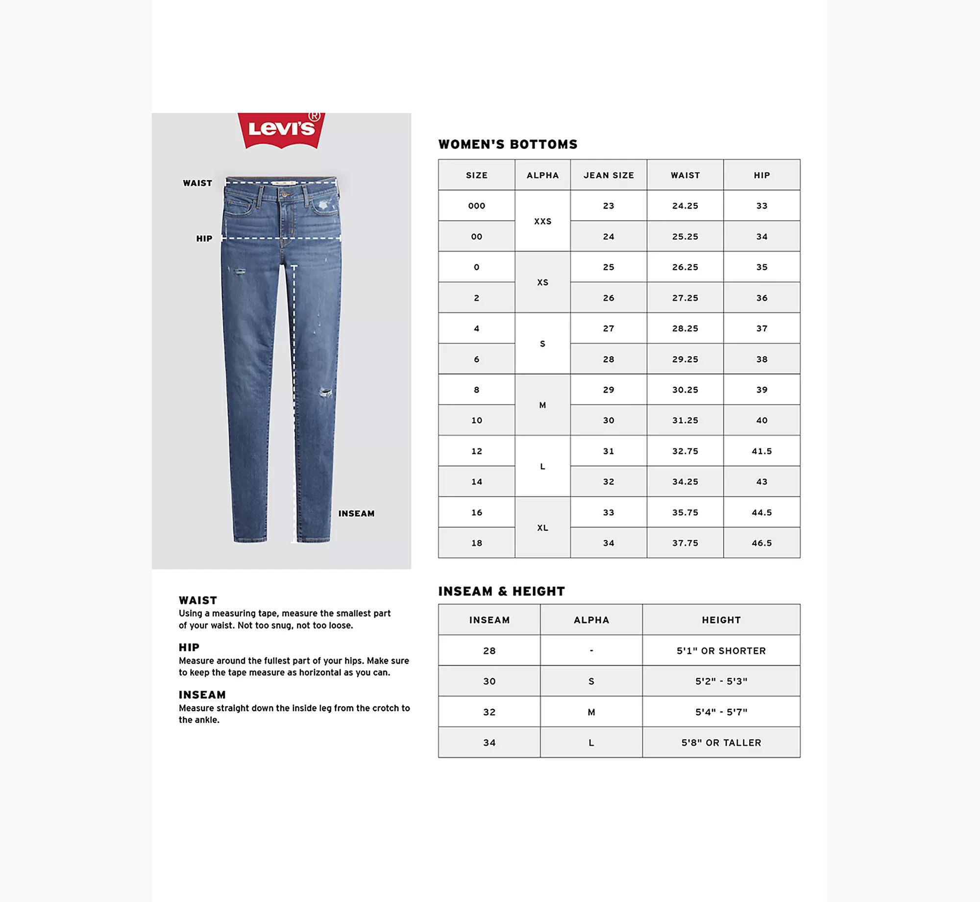 • Entrejambe : 32", Ouverture de jambe : 22", Mesures basées sur une taille 27