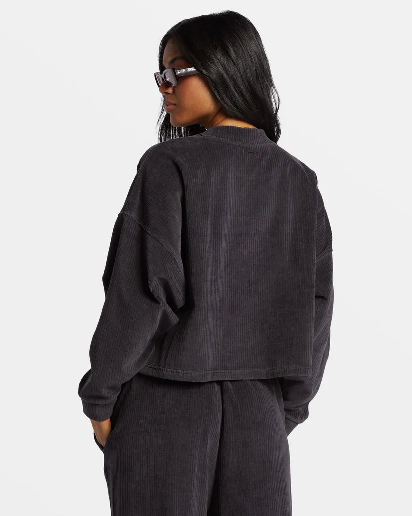 Le pull en velours côtelé confortable Sweet Sun affiche un style décontracté avec sa coupe carrée et son col ras du cou. Le tissu luxueux et la forme décontractée en feront rapidement votre nouveau sweat-shirt préféré. Présenté ici dans le coloris Black Sands.